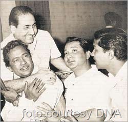 अगर आप मनोहारी सिंह के बारे में और जानना चाहते हैं तो ज़रा अंग्रेज़ी अख़बार DNA की इस लिंक पर जाएं । और मनोहारी दादा का इंटरव्यू पढें । ये तस्वीर मैंने इसी वेबसाईट से साभार ली है । ज़रा तस्वीर में मौजूद लोगों को पहचानिए । मोहम्मद रफ़ी साहब को तो आप पहचान गये होंगे । फिर हैं फिल्मों में बांसुरी बजाकर मशहूर हुए सुमन राज, फिर मनोहारी सिंह और सबसे दाहिनी तरफ विख्यात बांसुरी वादक पंडित हरिप्रसाद चौरसिया ।